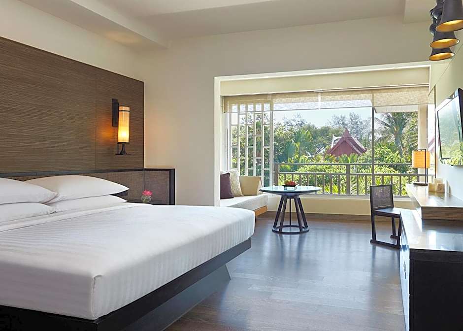 Enjoy Regency Club Lounge access when you stay in this 29-square-yard room with a 9-square-yard sunroom or balcony on the upper floors of the Regency Club Wing, featuring contemporary Thai décor with one king bed, a working area and an elegant bath with a sliding door and walk-in shower.