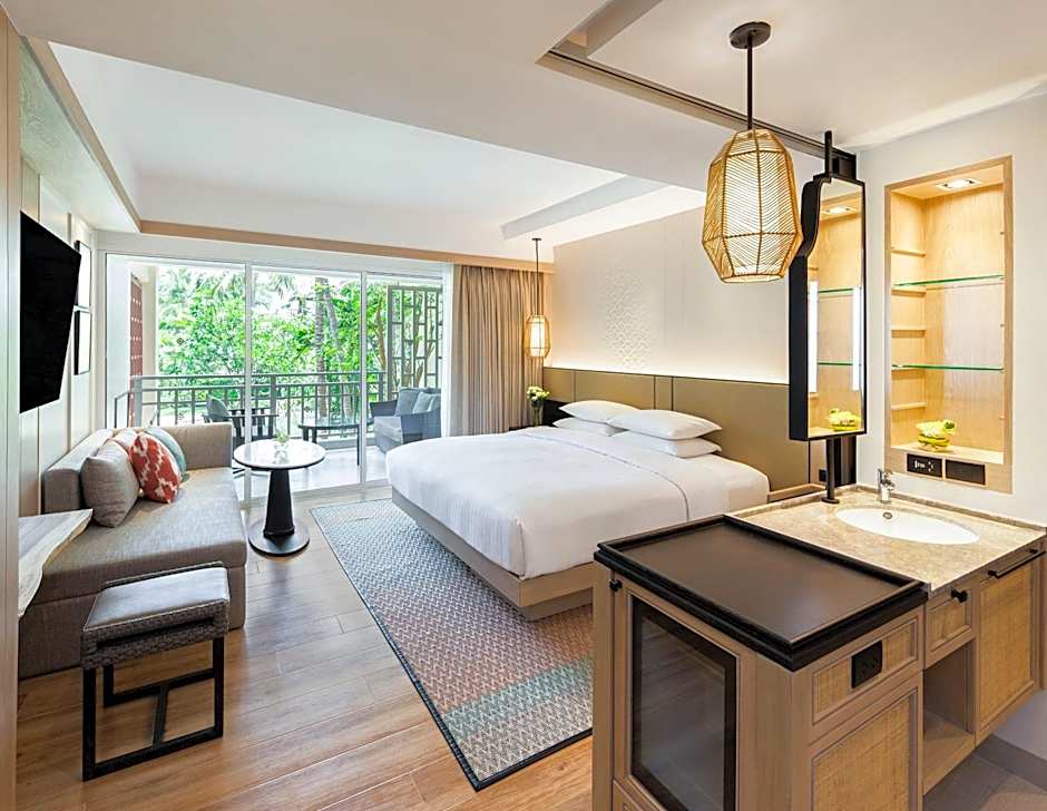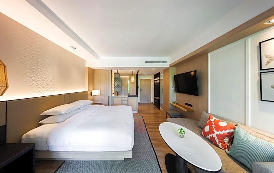 Unwind in a 29-sqm Hyatt Guestroom, including an additional 9-sqm balcony, a king- size bed, single sofa bed and inspiring views of our lush tropical gardens.