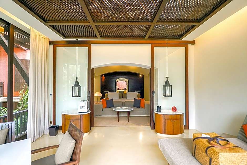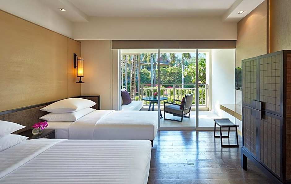 A 35-sqm room, including an additional 10-sqm outdoor patio on the first level with contemporary Thai décor features extended living area, two twin beds, work area and elegant bath with sliding door and walk-in shower.