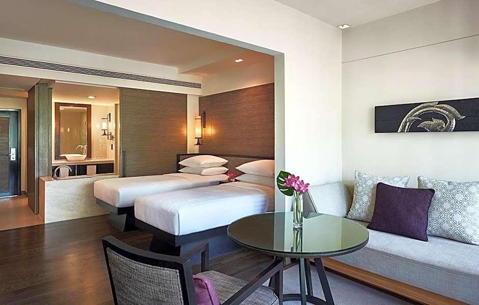 Enjoy Regency Club Lounge access when you stay in this 29-square-yard room with a 9-square-yard sunroom or balcony on the upper floors of the Regency Club Wing, featuring contemporary Thai décor with two twin beds, a working area and an elegant bath with a sliding door and walk-in shower.